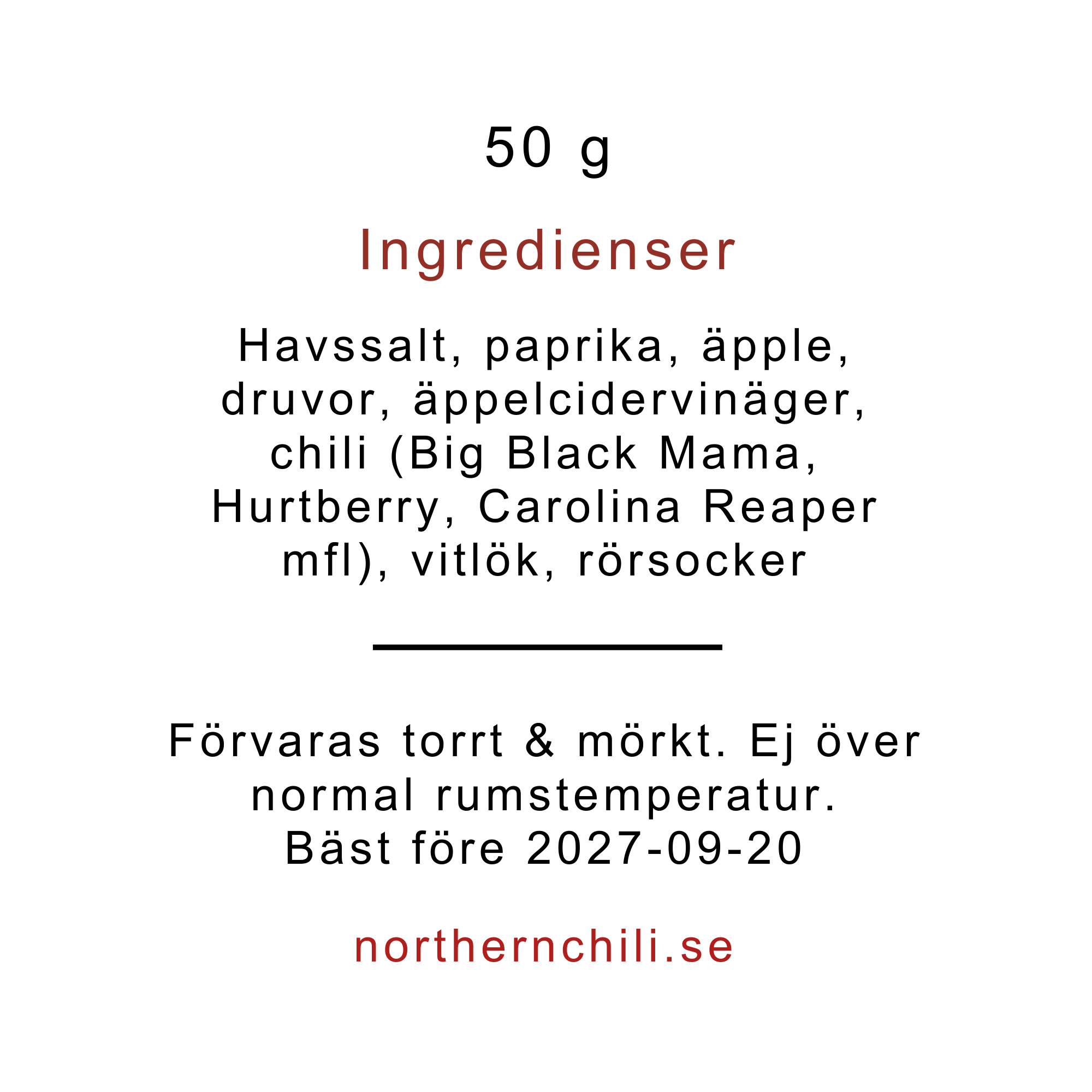 Hett salt med härlig smak av Hot Head, vår bästsäljande sås! Användbar till allt!