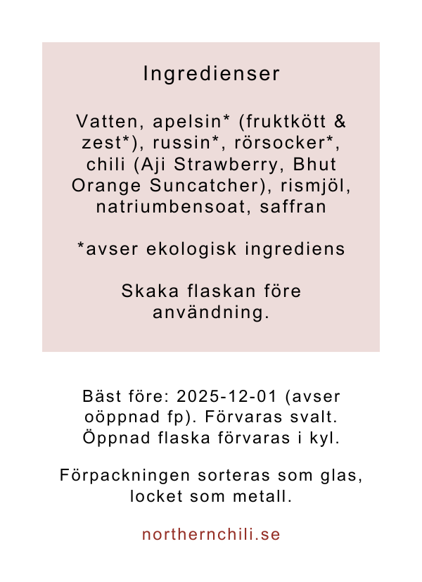 Ljuvligt julig sås med en doft av saffran, framträdande smak av apelsin & mjuka eftertoner av russin.